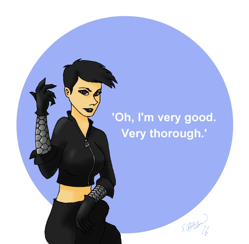 The character depicted in the piece is Dharma Reach from the ongoing James Bond comic book series published by Dynamite, in the story arc entitled "Vargr" in 2016.